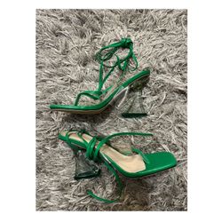 Tie leg pyramid heeled thong sandals in Green $45Portland, OR
