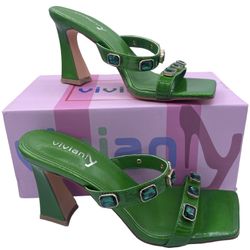 Vivianly squared open toe green heeled sandals diamond detail Size 6$39Vancouver, WA