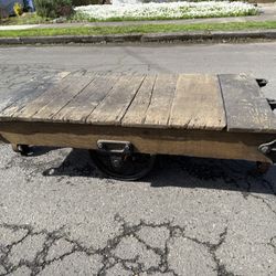 Vintage Industrial Factory Cart Coffee Table – Cast Iron Wheels – Authentic Patina – $800$800Portland, OR