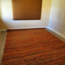 Queen headboard — rust/burnt orange vinyl, wall mount included, handmade - $100$100Portland, OR
