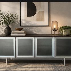 Mid Century Sideboard/Media Cabinet With Frosted Glass And Dark Wood$350Portland, OR
