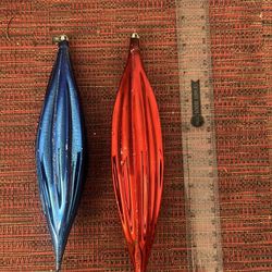 Vtg Pair Ribbed Blown Glass Fluted Teardrop Christmas Ornaments Poland$25Portland, OR