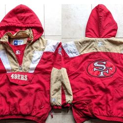 San Francisco 49ers 90s STARTER puffer jacket 1/2 zip L red gold NFL vintage$200Beaverton, OR