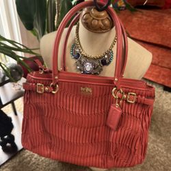 NWOT Beautiful Large Red Coral Coach Madison Leather Carrie Satchel Handbag $210Portland, OR