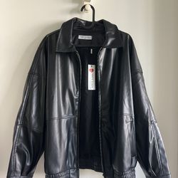 Vegan faux leather longline women’s jacket, size Large, brand new with tags. Sleek black finish with stand collar, full front zip with hidden placket,$50Tigard, OR