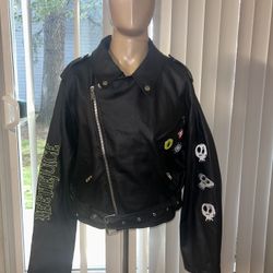 Beetlejuice Black Leather Jacket From Forever 21 Women’s Halloween Skull Sz XXL$55Portland, OR