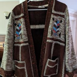 Montgomery Ward Vintage Navajo Knitwear Leather Cardigan
