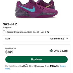 Nike Ja2 Size 6 1/2 Boys Color Purple$80Portland, OR