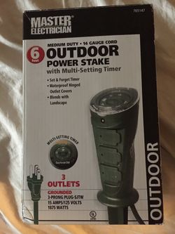 Master electrician outdoor power stake 14 gauge cord timer, waterproof.$15Happy Valley, OR
