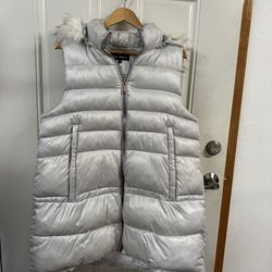 Faux Fur Trim Hooded Puffer Vest In Silver $25Portland, OR