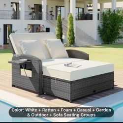 TOPMAX PE Wicker Rattan Double Chaise Lounge, 2-Person Reclining Daybed with Adjustable Back and Cushions, Free Furniture Protection Cover, White$999Vancouver, WA
