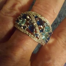 Gorgeous Ring: Sapphires & White Zircons In This Solid Sterling Silver Ring. It Is Stamped 925. Size 6. Never Worn/New In Box.$25Gresham, OR