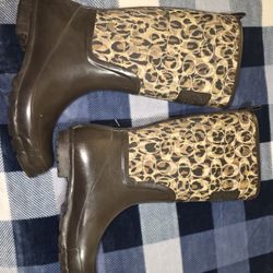 JOULES Rain Clogs Slip-on Rubber Welly Garden Brown Leopard Women's Size 7 / 38 $20Portland, OR