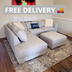 Gray Linen Sectional Couch And Ottoman $650Vancouver, WA