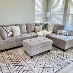 New Gray Sectional Sofa Microfiber Couch With Free Storage Ottoman And Pillows $699Tigard, OR