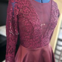 My Michelle Burgundy Lace Dress - Size 9, Long Sleeve, Sequin Bodice$45Boring, OR