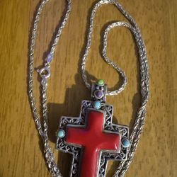 Sterling Silver 925 Cross Pendant w/ Red Coral & 24” Rope Chain – $80$80Portland, OR