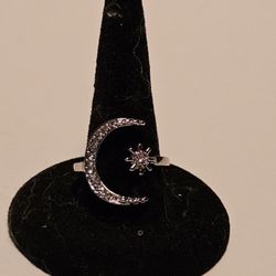 New Moon And Star Silver Adjustable Ring $12Tigard, OR
