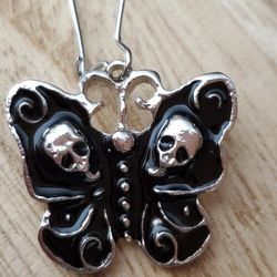 Halloween Goth Black And Silvet Tone Metal Skull Butterfly Pierced Earrings $6Hubbard, OR
