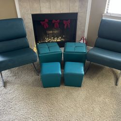 Office Starâ„¢ Slate Blue Set Of 2 Chairs, 2 Rockford Storage Ottomans And 2 Small Ottomans $200Clackamas, OR