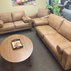 Modern Style Brown Leather Three Piece Couch Set$800Boring, OR