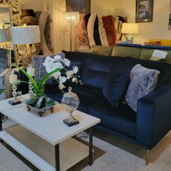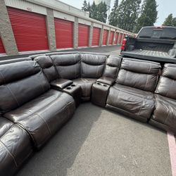Black Leather Sectional Couch With Drop Down Table $750Portland, OR
