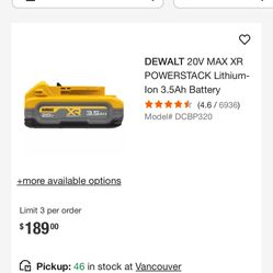 DEWALT 20V MAX XR POWERSTACK Lithium-Ion 3.5Ah Battery$100Vancouver, WA