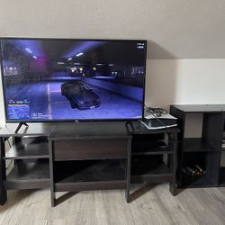 Dark Wood Tv Stand And Square Shelf $50Portland, OR
