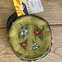 Hand Crafted Tie Dye PEACE SIGN Circular Clutch Bag Zipper Pouch Hippie Nepal 5" Green$8Portland, OR