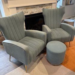 Velvet Wingback Accent Chairs With Poof $350Portland, OR