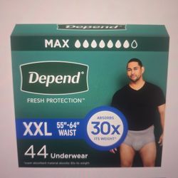 Depend Fresh Protection Adult Diapers, Incontinence Underwear for Men, Disposable, Maximum, Extra-Extra-Large, Grey, 44 Count (2 Packs of 22)$45Oregon City, OR