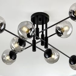 8 Light Glass Globe Ceiling Light Black and Gold Mid Century Flush Mount Sputnik Light Fixture Bubble Chandelier$52Portland, OR