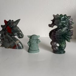 Carved Stone Figurines Set Unicorn Seahorse Grogu Style Crystal Decor $65Clackamas, OR