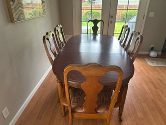 Mid-century oak dining table with 5 Cane seat and back Chairs$400Tualatin, OR