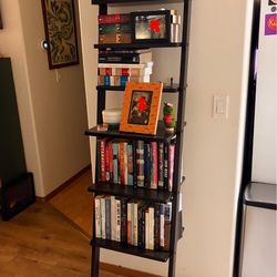 bookcase — staggered 4 shelves, teal/white, color changing lights$60Portland, OR