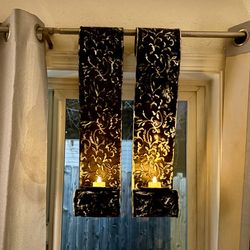 Rustic Metal Wall Candle Sconces / Holders – Red Damask Pattern (Pair)$10Oretech, OR
