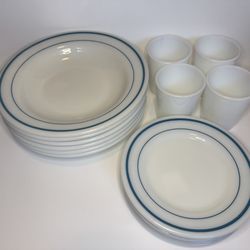 Turquoise Blue Stripe Dinnerware / Milk Glass Tumblers $50Portland, OR