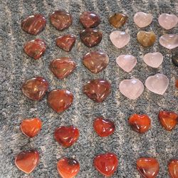 Carved Stone Hearts Carnelian Rose Quartz Petrified Wood $5Portland, OR