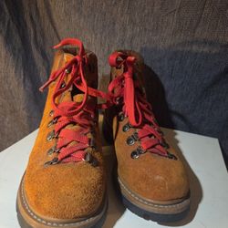 Vtg 70s Sears Mountaineering Hiking Boots Waffle Stomper Rust Suede Red Laces Women's Size 8$30Portland, OR