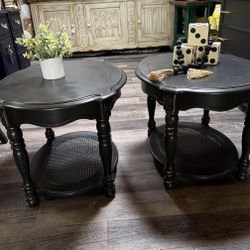Vintage Black French Farmhouse Matched End Tables W/ Cane $225Portland, OR