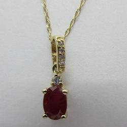 Solid 14K Yellow Gold Ruby & Diamond Pendant Necklace – .75ct Ruby / .10ctw F-VS2 Diamonds$320Portland, OR