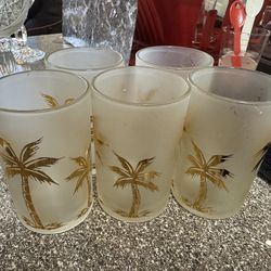 Vintage Mini Tiki Frosted Gold Palm Tree Wine Glasses Set Of 5$40Portland, OR