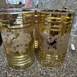 Vintage Gold Foil Tumbler Juice Glasses, Etched Silver Roses, Set of 3$25Portland, OR