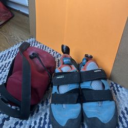 Scarpa Force V Climbing Shoes (EU 39.5 / US 8) + Metolius Chalk Bag — Like New Bundle$70Portland, OR