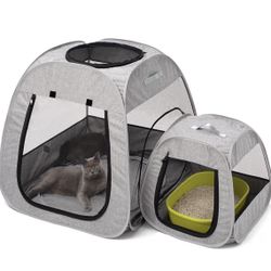 TENRAI Portable Cat Playpen + Litter Tent (2-Piece Set) — Grey — Foldable Indoor/Outdoor$25Portland, OR
