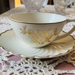 Royal Staffordshire Porcelain Tea Cup & Saucer Set: Elegant White with Gold Trim $10Washington County, OR