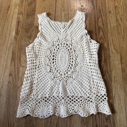 Saint Tropez West Crochet Tank Top Cream Ivory Boho Medallion Knit Sleeveless L$19Portland, OR