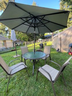 Patio set: round table and four comfortable chairs; umbrella included. Everything in good condition.$185Tualatin, OR