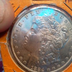 1884-0 Morgan Silver Dollar; Clean Fields, Cartwheel, Luster, Choice MS, Full Feathering, Semi Key Date, Higher Grade.$83Portland, OR