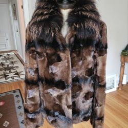 Real Mink Fur Coat With Fluffy Tanuki Collar Size S NO OFFERS $300Portland, OR